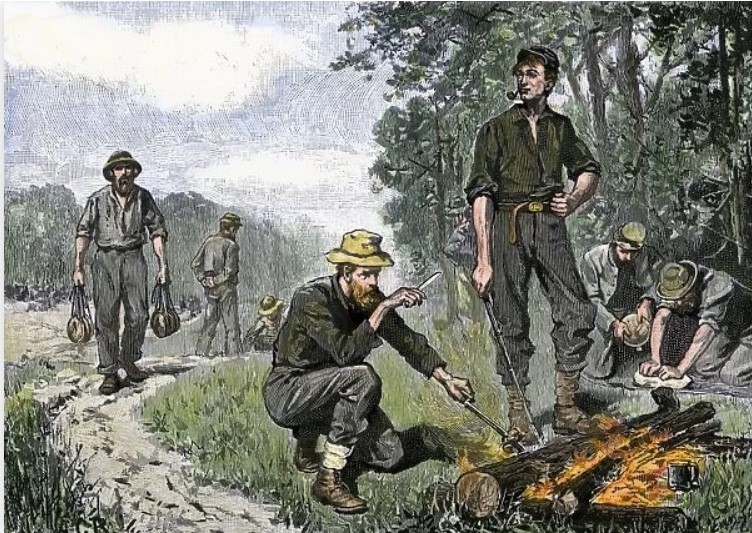 [3] Illustrations: There are lots of foraging drawings, but I couldn’t find any from the Maryland 1862 campaign. 1. Two foragers chasing a pig, probably Union soldiers. Confederates mastered foraging as well. It just wasn’t encouraged by Lee. Drawing found at https://www.crossroadsofwar.org/galleries/camp-life/. 2. Depicts Confederate camp life and cooking supper, found at https://www.northwindprints.com/civil-war-us/confederate-camp-dinner-civil-war-5880217.html.