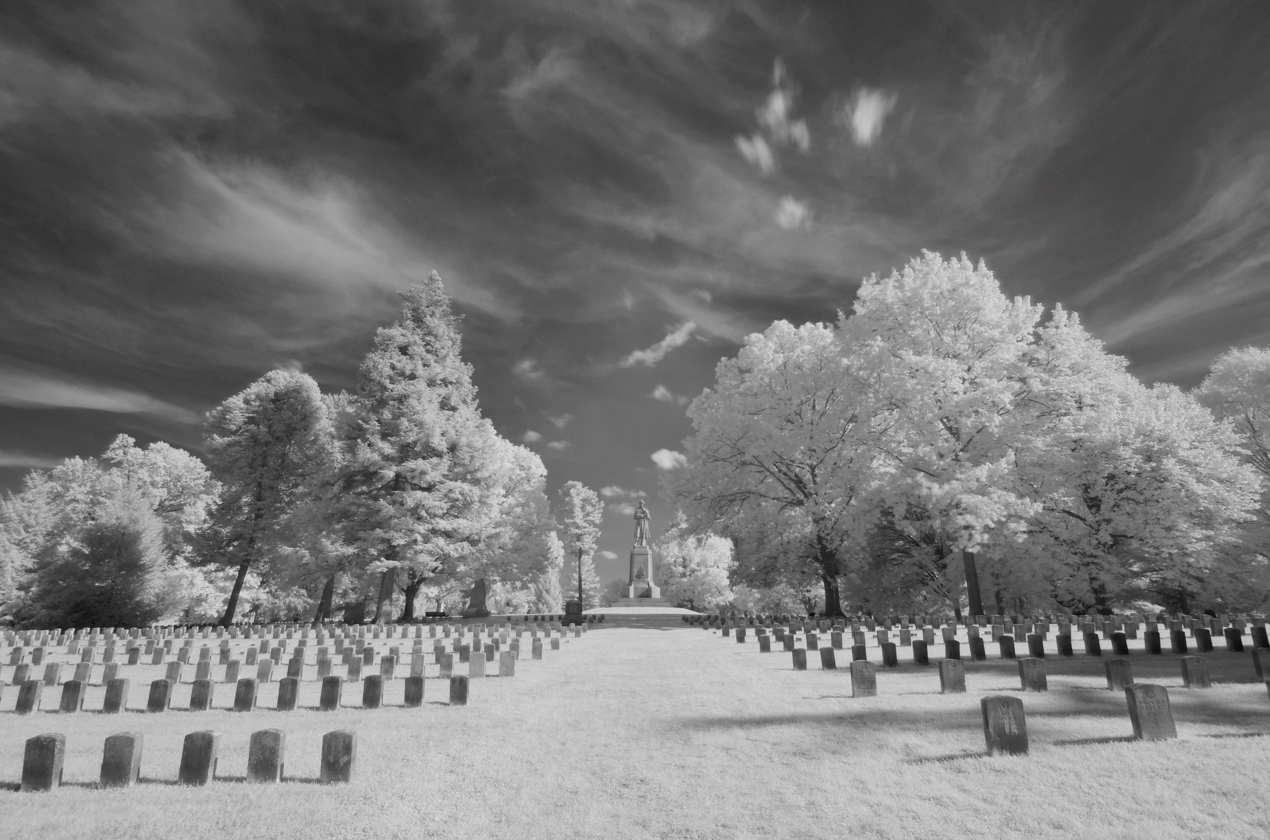 Thus terminated a bloody and obstinate contest. From sunrise to sunset the waves of battle ebbed and flowed. Men wrestled with each other in lines of regiment, brigade, and division while regiment, brigade, and division faded away under a terrible fire, leaving long lines of dead to mark where stood the living. Fields of corn were trampled into shreds, forests were battered and scathed, huge limbs sent crashing to the earth, rent by shell or round shot. Grape and canister mingled their hissing scream in this hellish carnival, yet within all this and through it all the patriots of the North wrestled with hearts strong and nerve unshaken—wrestled with the rebel hordes that thronged and pressed upon them as to destruction; never yielding, though sometimes halting to gather up their strength; then with one mighty bound throwing themselves upon their foes, to drive them into their protecting forest beyond. We slept upon the bloody field of our victory.[1]