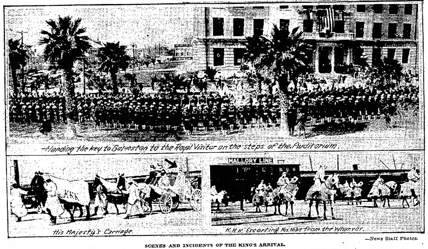 [9] “King Frivolous is Welcomed by Host of Happy Subjects,” Galveston Daily News, Galveston, TX, March 4, 1919.