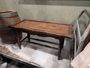 One of the coolest artifacts at the museum (in my opinion) is a table allegedly made from the wood of John Brown’s hanging post. A month after his trial, and two months after his raid on Harpers Ferry, John Brown was hanged in Charles Town, Virginia (now West Virginia). While Brown’s body was returned to his wife in Harpers Ferry and eventually taken home to North Elba, New York for burial, a few opportunists allegedly cut down the hanging post and fashioned it into this table, which now resides in the West Virginia State Museum. Much like other John Brown artifacts, documentation proving the table’s significance is scarce, but the mystery is certainly fascinating to entertain.