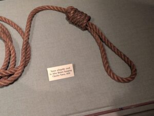 The key to Brown’s Charles Town jail cell is displayed right next to the rope. This artifact, however, has little to no backstory corroborating its authenticity.