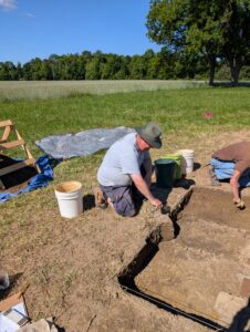 Today, there is nothing left of the farm except for an interesting foundation. It was too small to belong to the house…. but what kind of outbuilding was it? Archeologist Lexi Lowe of the Richmond National Battlefield Park wanted to know and was determined to find out. What secrets of the farm and its history could this structure unlock? In late May 2025 Lexi and a team of archeologists, NPS employees, and volunteers descended on the property to try to find out.