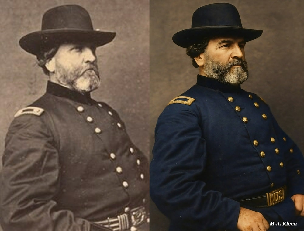 I then enhanced the above low-resolution portrait of Union Gen. George H. Thomas[2] using the prompt “In the same style as above, enhance and colorize the attached photo of a civil war Union general. Don’t change any detail about his face or uniform. Keep the same photo dimensions.”