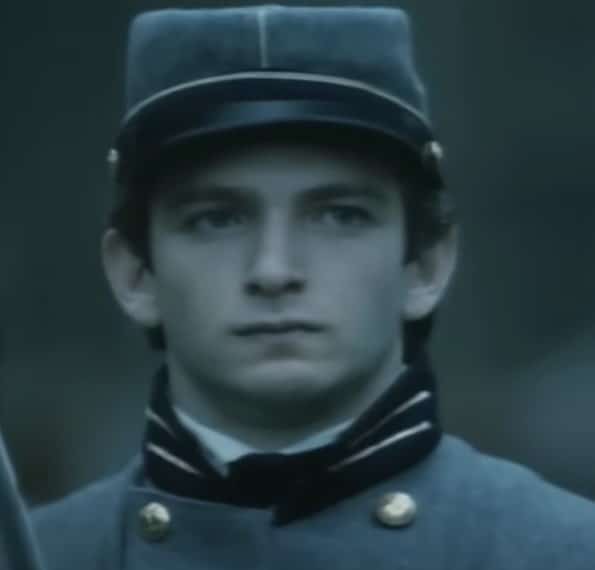 The main characters are Shelby Peyton, Henry O’Neal, and George Custer—an interesting mix of fictional and real historic people. Peyton was played by Dan Futterman. Shelby Peyton, though supposed to be from Virginia, has a storyline that is eerie similar to John Pelham. His resignation from West Point includes a brief dialogue about not accepting any other commissions prior to his resignation. Peyton stops in New York to have his photograph taken at Matthew Brady’s studio; Pelham probably did not have his photograph taken while journeying south in 1861, but there was debate about the date of his photography taken in the north at the time the film was made. Unlike Peyton, Pelham was not known to travel through Baltimore and pause to see a fiancee.