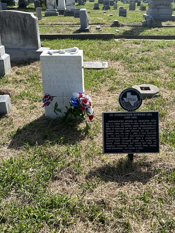 Edward Lea was laid to rest in the Trinity Episcopal Church Cemetery in Galveston. While his commander’s body was later exhumed and relocated to Annapolis, Edward’s father refused to have his son exhumed as he believed he would have wanted to remain on the field where he had died. For the elderly Lea, this grave was a fitting place for his son as it was “in sight of the sea, in sound of the surf, where such devoted sailors would love to lie.”[11]