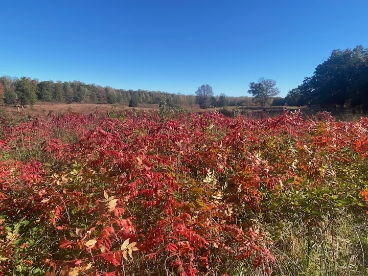My absolute favorite spot at Spotsy is off the beaten path because it’s hidden in time rather than space, and for most of the year, it remains hidden in plain sight. However, for a few brief weeks in autumn, the landscape turns crimson as the sumac changes color, and BOOM, it’s there.