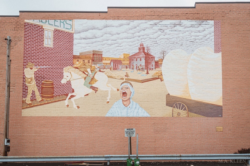 Mural painted by Rebecca Sawyer Spoon depicting the Charleston Riot of 1864 in downtown Charleston. Photo by M.A. Kleen.