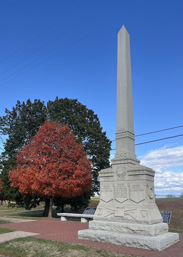After preparing supplies and boiling coffee, Greene’s division was ordered to march towards the firing that had woken them. Wounded men of the I Corps and their own corps’s 1st Division streamed around them. The Ohioans formed in the East Woods, where their corps commander, Maj. Gen. Joseph Mansfield, had just been mortally wounded. As artillery and rifle fire thundered nearby, the regiment steadied itself for a fight.