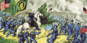 The formation of Irish regiments in the Union army, complete with Irish flags and folkways, did not just provide the comforts of ethnic solidarity to immigrant soldiers. The regiments also served as a challenge. In the 1850s, these very symbols of foreignness had been stripped by Know Nothing governors from Irish militia companies. During the Civil War the once despised flags had been advanced in battle at great sacrifice to the immigrant men who bore them and to the cheers of native-born soldiers who shared the same fields of death. [4]