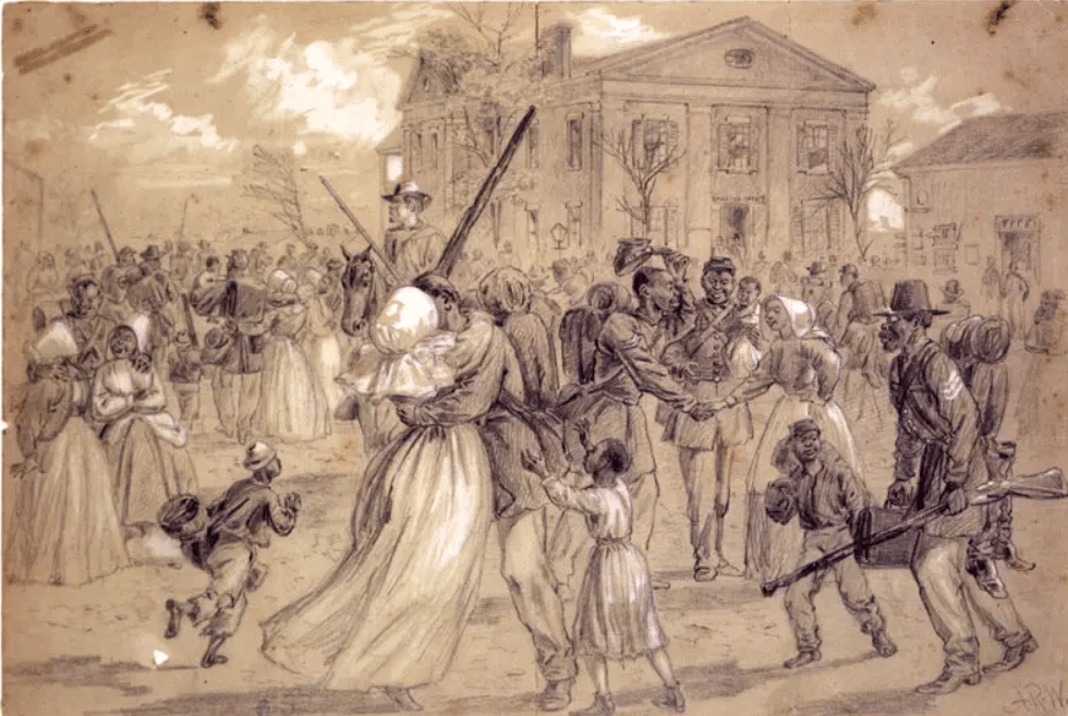 Union soldiers campaigning in the South often found that the only Southerners who were loyal to the Union were the Blacks they encountered as slaves on plantations. The enslaved African Americans offered encouragement, passed on intelligence about the location of Confederate units, and helped Union soldiers who had been taken prisoner escape to the North. When Blacks were finally allowed to enlist in the army, they joined by the tens of thousands. [5]