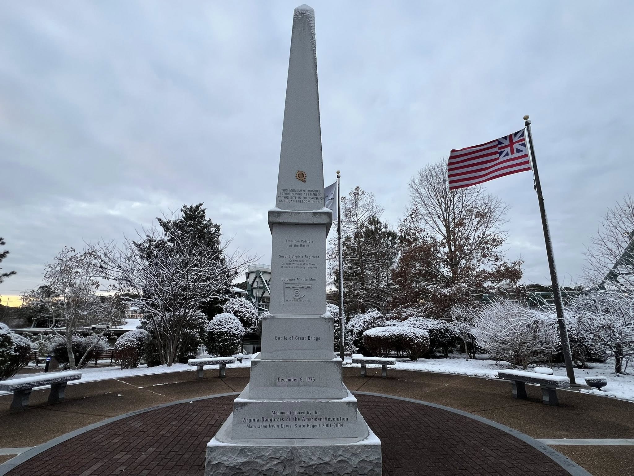- A snowy report from the Emerging Revolutionary War team as they commemorated the 250th anniversary of the Battle of Great Bridge (see right)