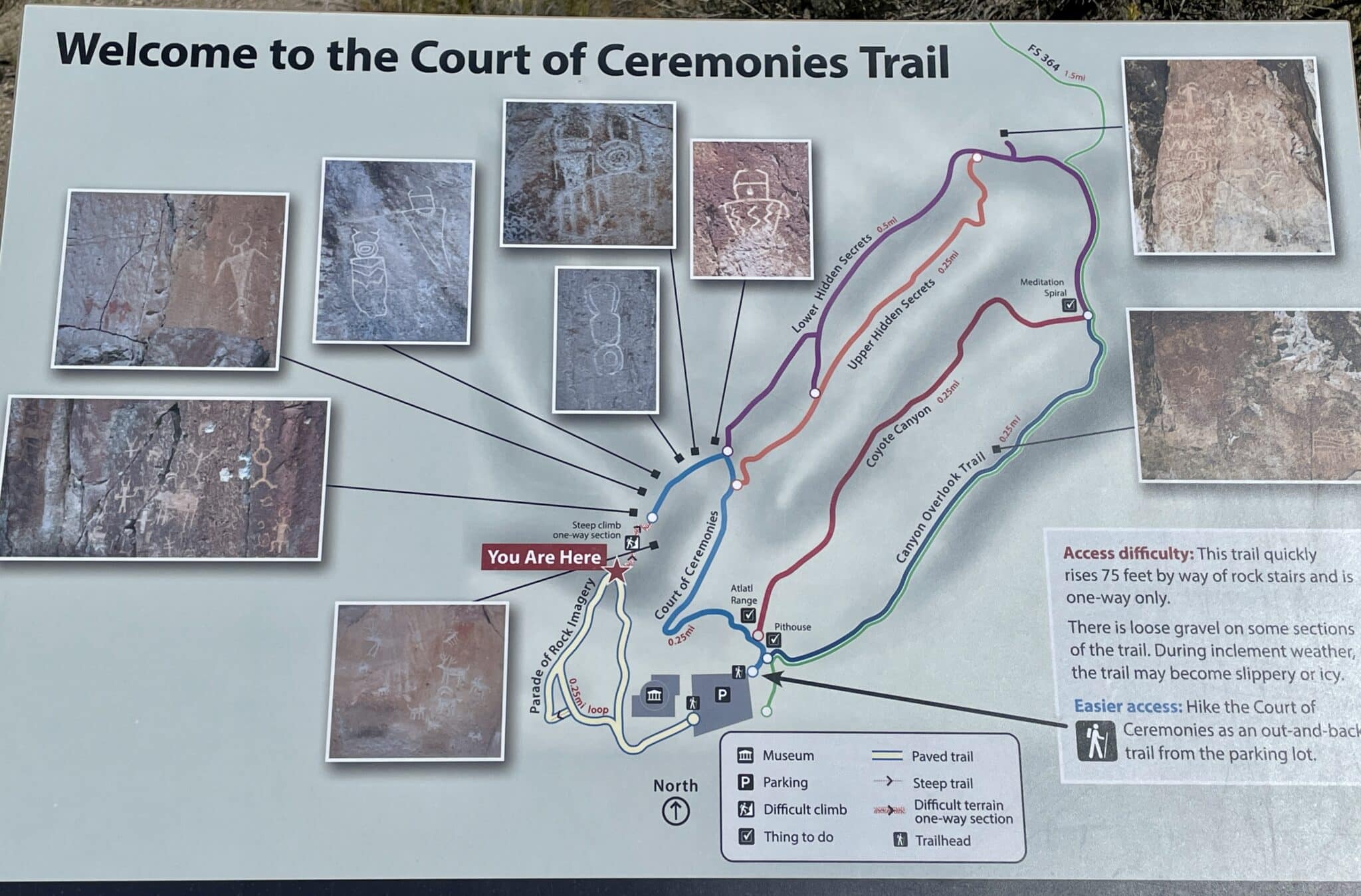 - “Welcome to the Court of Ceremonies Trail.” Photo by Tonya McQuade, 6 Oct 2025, Frémont Indian State Park, Sevier, Utah.
