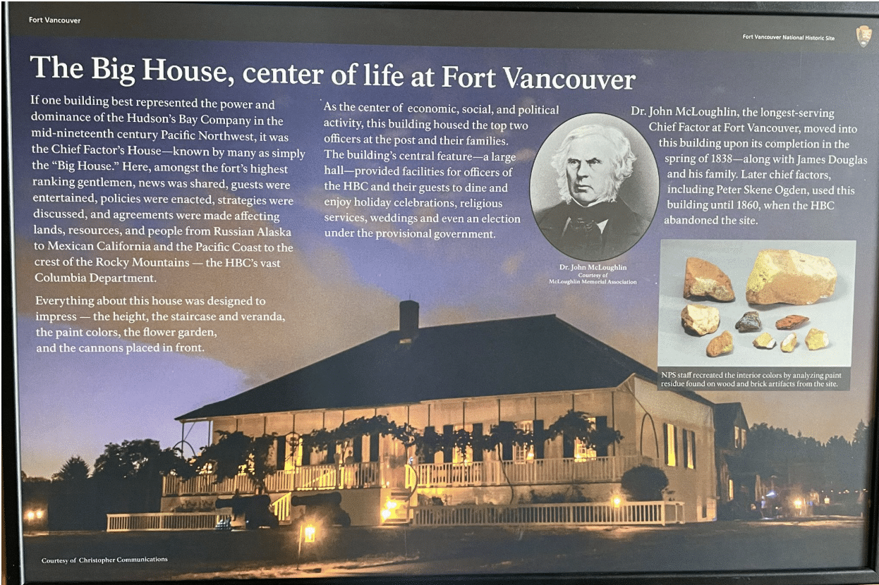 - “The Big House , center of life at Fort Vancouver.” Photo by Tonya McQuade, 27 Jun 2024, Fort Vancouver National Historic Site, Vancouver, Washington, https://commons.wikimedia.org/wiki/File:Col._Frémont_planting_the_American_standard_on_the_Rocky_Mountains_LCCN2003689276.jpg.