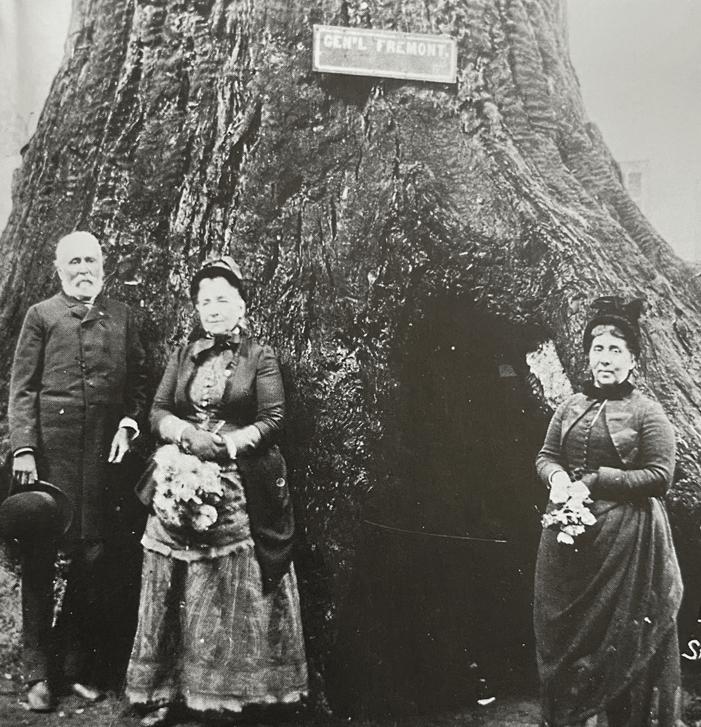 Frémont was greatly celebrated on this return visit, and he posed in front of the tree with his wife and daughter. Asked by a reporter whether that account was true, he reportedly said, “It’s a good story; let it stand,” according to the park brochure.
