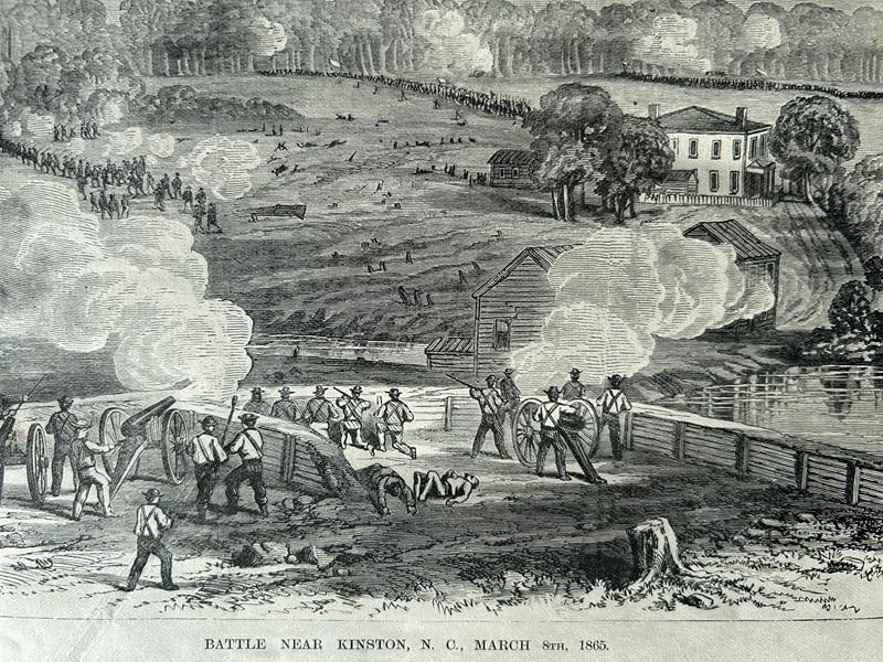 The Indiana regiments distinguished themselves again at the battle of Wyse Fork (near Kinston, North Carolina) in March 1865. Confederate forces were attempting to prevent Cox’s Provisional Corps from linking up with other Union forces for an assault on Goldsborough. The Indiana regiments played a key role in defeating the Confederates. General Cox reputedly remarked that the Indiana men had “nobly sustained the personal reputation gained” during the Atlanta Campaign. Elements of their success were the strong cooperation of regimental and company commanders in the First Brigade, good fire discipline, and light casualties, while inflicting much heavier casualties on the Confederates.[10]