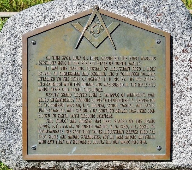 [5] “2nd LT Frederick J. Holt Beaver; First Masonic Ceremony Held in the Present State of North Dakota, July 31, 1863,” The Historical Marker Database, https://www.hmdb.org/m.asp?m=234899; Find-A-Grave, Rev. Frederick John Holt Beever, https://www.findagrave.com/memorial/34220335/frederick-john_holt-beever.