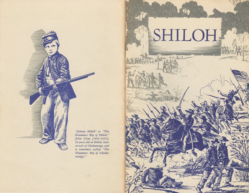 The battle was featured in Disney’s Johnny Shiloh (1963), a largely fictional account of the wartime experiences of John Clem.[3] At the age of ten, Clem doggedly pursued the 22nd Michigan Infantry, eventually being accepted as a drummer boy and going on to become the youngest noncommissioned officer in U.S. Army history.