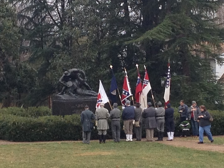 A little later in the morning, a group of Confederate reenactors appeared with a wreath to lay at the memorial for Sgt. Richard Kirkland. A South Carolinian who jumped over the wall after the battle to give water and comfort to dying Federals, Kirkland earned the nickname “The Angle of Marye’s Heights.”