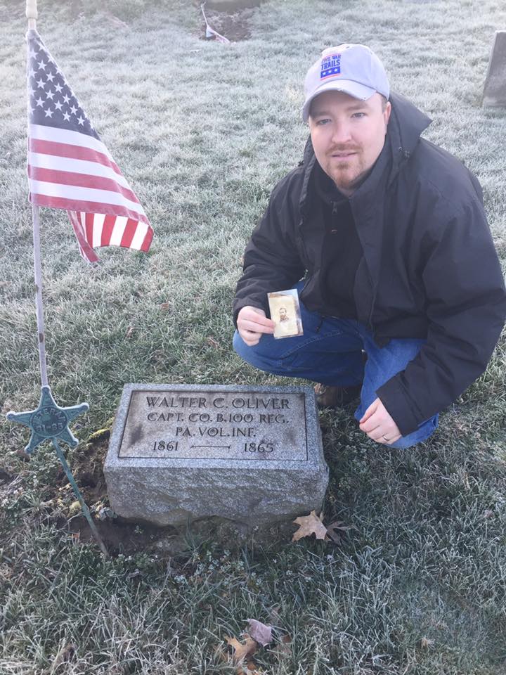 After purchasing it, and waiting for it in the mail, it finally came. I looked at it briefly and placed it on my dining room table where it remained for weeks. Life took me to other more pressing things that needed done. I knew the officer in question, Capt. Walter C. Oliver, Co. B, had been killed at the Crater and I just assumed he was buried in Petersburg. Through a quick read of the unparalleled regimental history by William Gavin and Morningside House, Inc., I also learned that he had been twice wounded before his death, at Second Manassas and Cold Harbor. Additionally, Oliver had been in the regiment since the beginning, and had been officially mustered into the unit in August 1861, not to mention his meeting with President Lincoln just several weeks later. I read this information sometime while waiting for the image in the mail and shortly after receiving it but had done nothing further to learn more about this soldier. That constant voice thirsting for my information kept nagging at me. Finally, after several weeks, with a few minutes to spare on a Friday at work I checked to see where he was buried following his mortal wounding at the Crater. My jaw fell to my desk and those awesome moments when you get those history-related tingles happened. This soldier’s remains were brought home from Petersburg. He was reburied just seven miles from my place of employment and only a handful more from where I live. Coincidence that this image of a KIA found its way to someone who lives and works so close to his final resting place? This is why I “do” history.