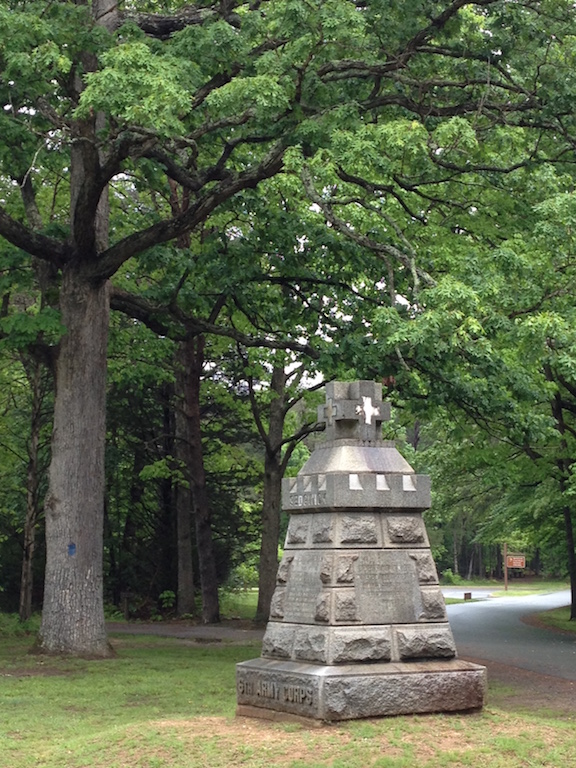 Rather than continue to stand and fight, McVicar decided to cut his way out. Turning in his saddle, he ordered a charge. According to Col. Thomas Munford of the 2nd Virginia Cavalry, the attack followed the eastern fork of the Brock Road. Remnants of this fork branch off modern Grant Drive inside the National Park near the Sedgwick monument. In the vicinity of the monument, the regiment turned to the right and followed the Brock Road north. The charge had the desired effect and temporarily broke through Lee’s brigade. Once the head of the regiment cleared Alsop’s Field and the officers regained control, the New Yorkers galloped off toward Chancellorsville.