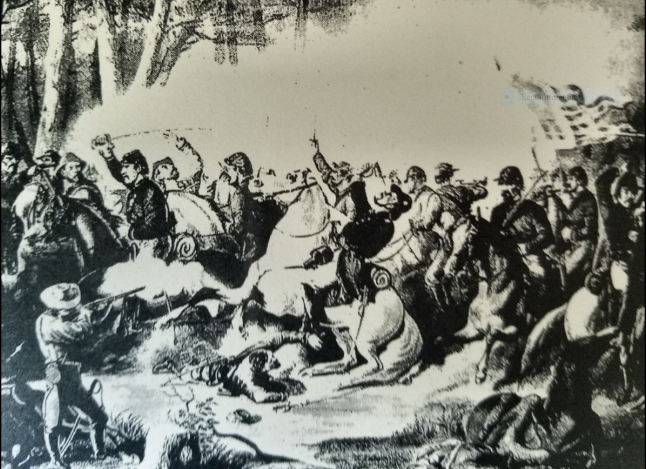 Once in Alsop’s Field, McVicar faced the regiment about just as more volleys tore into the New Yorkers. Then Lt. J.H. Bell rode forward and after a brief exchange, confirmed that the 3rd Virginia Cavalry stood directly in their front. Shouts and taunts then echoed across the landscape between blue and gray in “language…not found in Sunday school text-books.” With their dander up, bugles sounded in the Confederate ranks and the 5th Virginia Cavalry attacked. The Empire Staters quickly turned back the assault. As their sister regiment retired, the 3rd Virginia attacked and were also repulsed.
