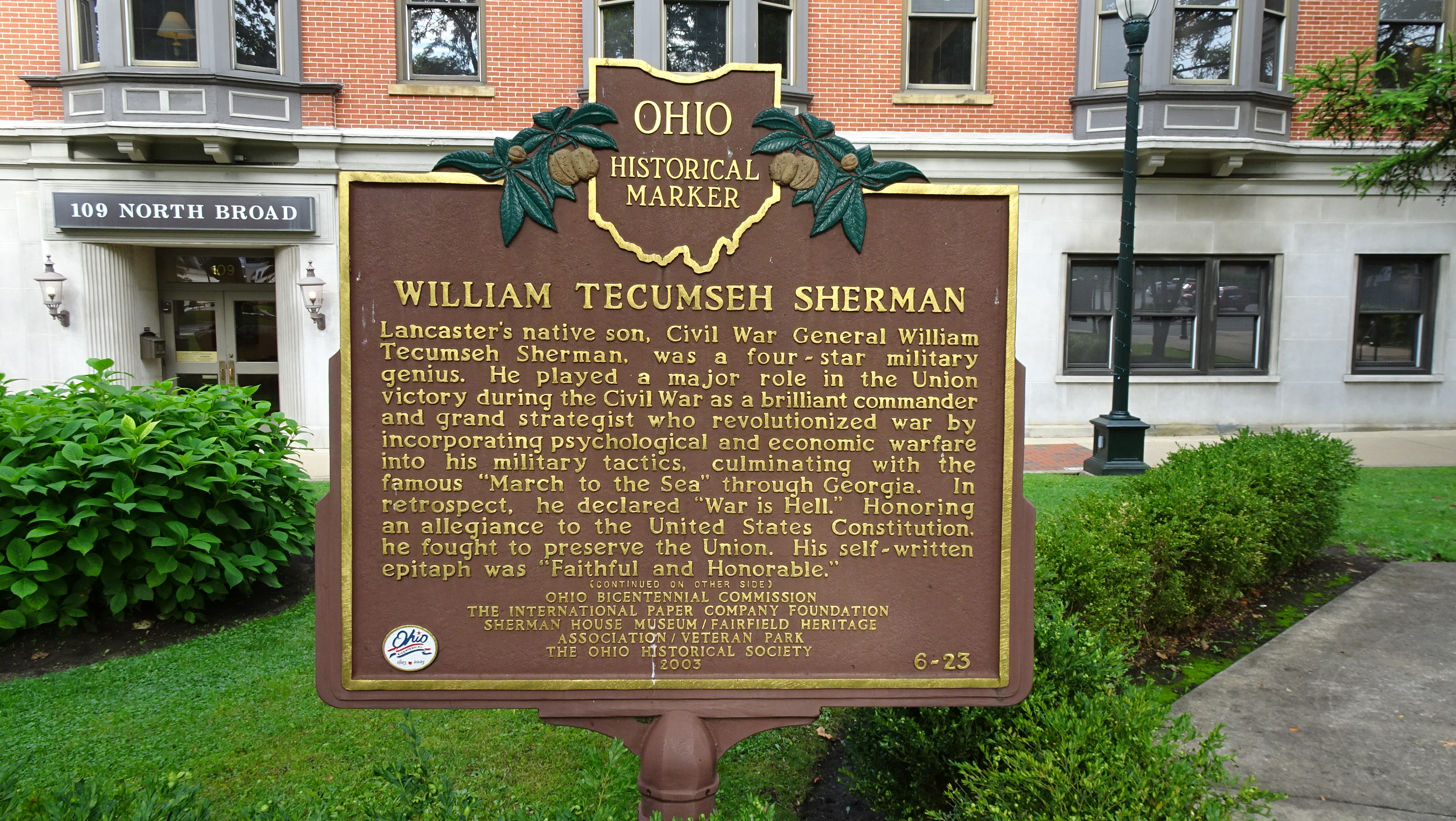 On a recent trip from North Caroline to Michigan, my wife, Nancy, and I drove diagonally across Ohio to avoid congested interstates. Nancy googled local towns as we drove and mentioned that Lancaster, Ohio, a few miles ahead, was the birthplace of William T. Sherman and that his boyhood home is now a museum. We took the next exit.