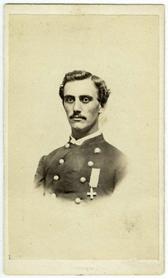 William Ellis was born on July 17, 1842 in Brantford, West Canada—present-day Ontario. His father, Alexander Ellis, died in 1854, leaving William to provide for his mother Catharine. The next year, at the age of fifteen, William enlisted into the “Prince of Wales” 100th Regiment and was soon promoted color sergeant in the 22nd Royal Regiment. When the Civil War broke out William bought his discharge from the British army and traveled to his mother’s home in Buffalo, New York. There he enlisted into the 49th New York Infantry in the summer of 1861.[2]