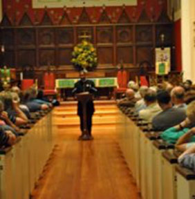 In the summer of 2010, Park Service historian John Hennessy and I presented a History at Sunset program entitled “Slavery and Slave Places in Fredericksburg.” One of our stops was at St. George Episcopal Church’s Faulkner Hall.