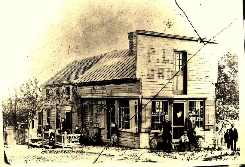 Among the material donated was a print from a ca. 1895 glass plate showing Pinkney Bone standing proudly in front of his store along with his wife and several children. What struck me most about the photo was not Pinkney Bone or the store, but the slightly out-of-focus individual in the bottom right corner. It was likely happenstance that he appeared in the family photo, perhaps just walking down the sidewalk at just the right time. Thankfully, his name was preserved on the photo along with each of the Bone family members. Here’s a better look…