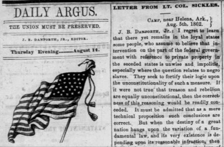 Sickles, H.F. to J.B. Danforth, Jr., August 5, 1862. “Letter from Lt. Col. Sickles.” Rock Island Argus and Daily Union, August 14, 1862.
