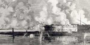Shells flew across the now exposed courtyard and detonated near the powder magazine threatening to obliterate the fortress, its 47 guns, and 361 Confederates inside. The white flag went up. The planned 10,000-man assault would not be needed.