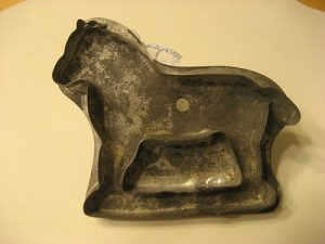 So, what did cut cookies look like in the 1860s? The simplest ones were squares or rectangles cut with a knife, or rounds cut with the rim of a drinking glass. A set of cookie cutters usually belonged to a family and were a cherished part of the holiday tradition, but what might they have looked like? Usually the first shape that comes to mind is a gingerbread man, and there were certainly ginger stars and ginger horses, but the war influenced tin makers to create some military-themed cutters as well.