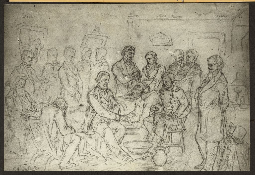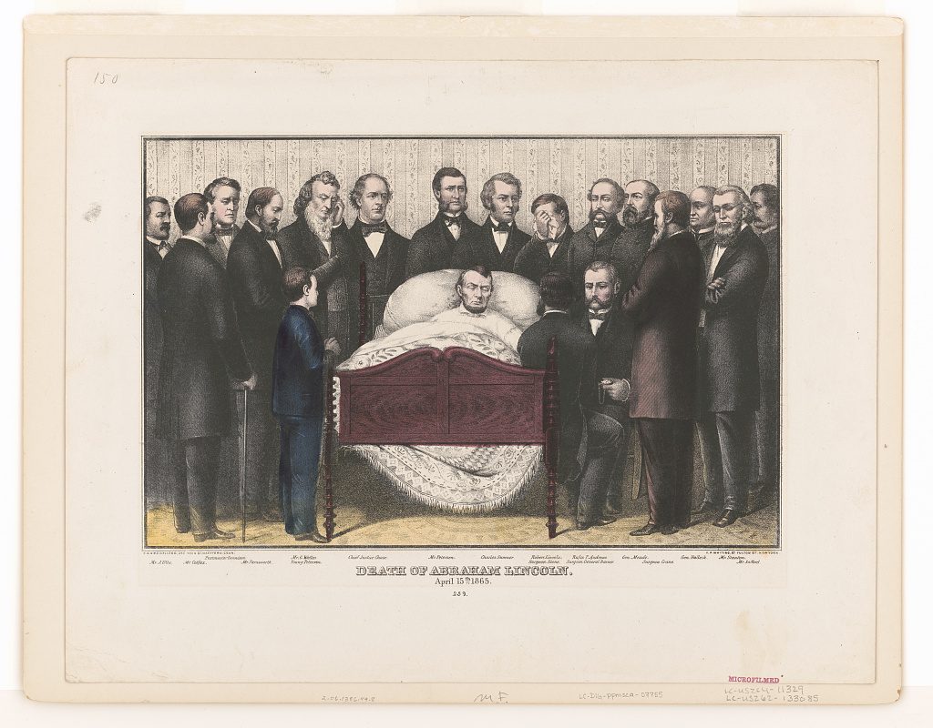 The following morning at about 7:22 a.m. Abraham Lincoln died, plunging the already struggling nation deeper into grief and retribution. Members of his cabinet and other political leaders clustered around his deathbed – shocked, grieving, or already plotting their next moves in the governmental power vacuum created by the president’s death.