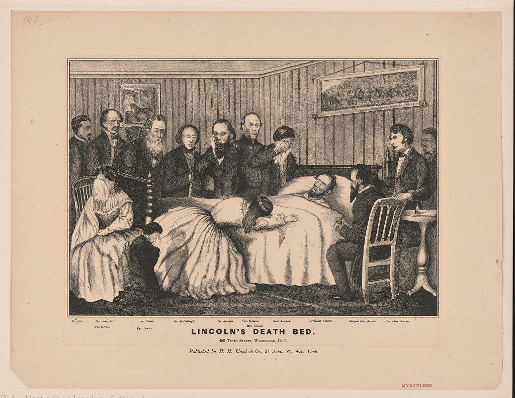 - Lincoln’s deathbed in reality and depiction evoked the old ideas of “good death” along with the battlefield changes. Lincoln died in a bed, surrounded by grieving family and friends – but he also died of a wound.