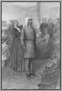 Young ladies enamored of handsome men in uniforms threatened those who had not signed up yet with a hoopskirt of their own if they stayed home. Diarist Mary Chestnut, very early on in her now-famous offering, described the gaiety in South Carolina: