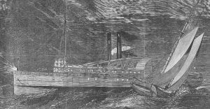 On September 7, 1860, Hartsuff left Chicago aboard the steamer Lady Elgin, on its return voyage to Milwaukee, Wisconsin, after placing an order for provisions for the garrison. Around 2:00 a.m., Hartsuff heard a disturbing noise outside his cabin. The Lady Elgin had collided with a 350-ton schooner, the Augusta, during a storm that night. The schooner’s bow penetrated the Lady Elgin’s hull causing it to sink. The captain of the Lady Elgin, Jack Wilson, directed Hartsuff to start passing out wooden life preservers to the passengers when it became clear that they would have to abandon ship.