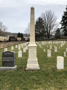 In 1903 Brown’s body was exhumed and re-interred at the National Cemetery in Grafton. The following year an impressive obelisk monument was erected over his grave, easily identified above the many surrounding government-issued headstones. In 1928 the local tent of the Daughters of Union Veterans placed a stone market and tablet on the spot Brown was killed adjacent to the railroad tracks at Fetterman Crossing. The marker has since been moved to a more visible location on Route 50.