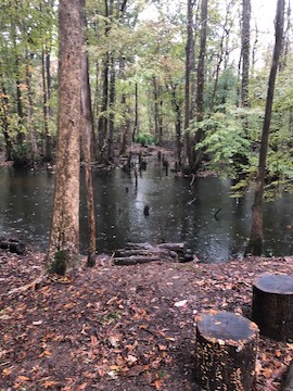The focus of our day on Friday was visiting the three sites along the initial Confederate line of defense in South Carolina, the Salkahatchie River. I must admit that while I knew that the Salkahatchie was largely a swamp, it really didn’t look much like I thought it would. The actual channels are quite narrow, but the swamp extends for more than a mile. The water is pitch black, and when it’s warmer, I’m certain that its occupants include water moccasins, alligators, and other interesting critters. Fortunately, when it’s 45 degrees, cold-blooded reptiles aren’t terribly interested in bothering visitors. We were just fine with that….