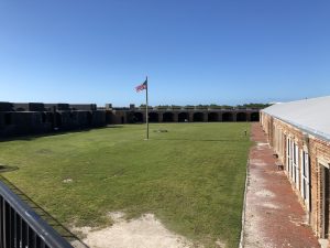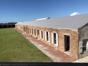The fort was garrisoned throughout the war by a variety of regiments, including (but not limited to) several batteries of the 1st US Artillery, four regiments from New York, the 47th Pennsylvania, 1st US Infantry, 2nd Florida Cavalry and two regiments of the United States Colored Troops. The fort did not come under attack during the war…in fact it never saw a shot fired in anger, instead serving as a deterrent to blockade runners. The occupants of the fort instead spent the war fighting mosquitoes, disease and boredom. As I explored the parade ground and barracks I tried to imagine these men from far off New York and Pennsylvania who rode out long stretches of the war at this remote spot.