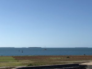 Now, I couldn’t keep my saintly patient wife waiting too long inside the walls of Fort Zach, so we headed out for a short walk to the nearby beach. White sand, beautiful blue water…it was stunning. We waded into the water and hunted small shells and coral. I wondered how often the soldiers stationed at the fort could escape from their work and drudgery for a few minutes of splashing and wading at the beach. And while the fort did have beach access during the Civil War, much of the present day public beach was created in the last fifty years.