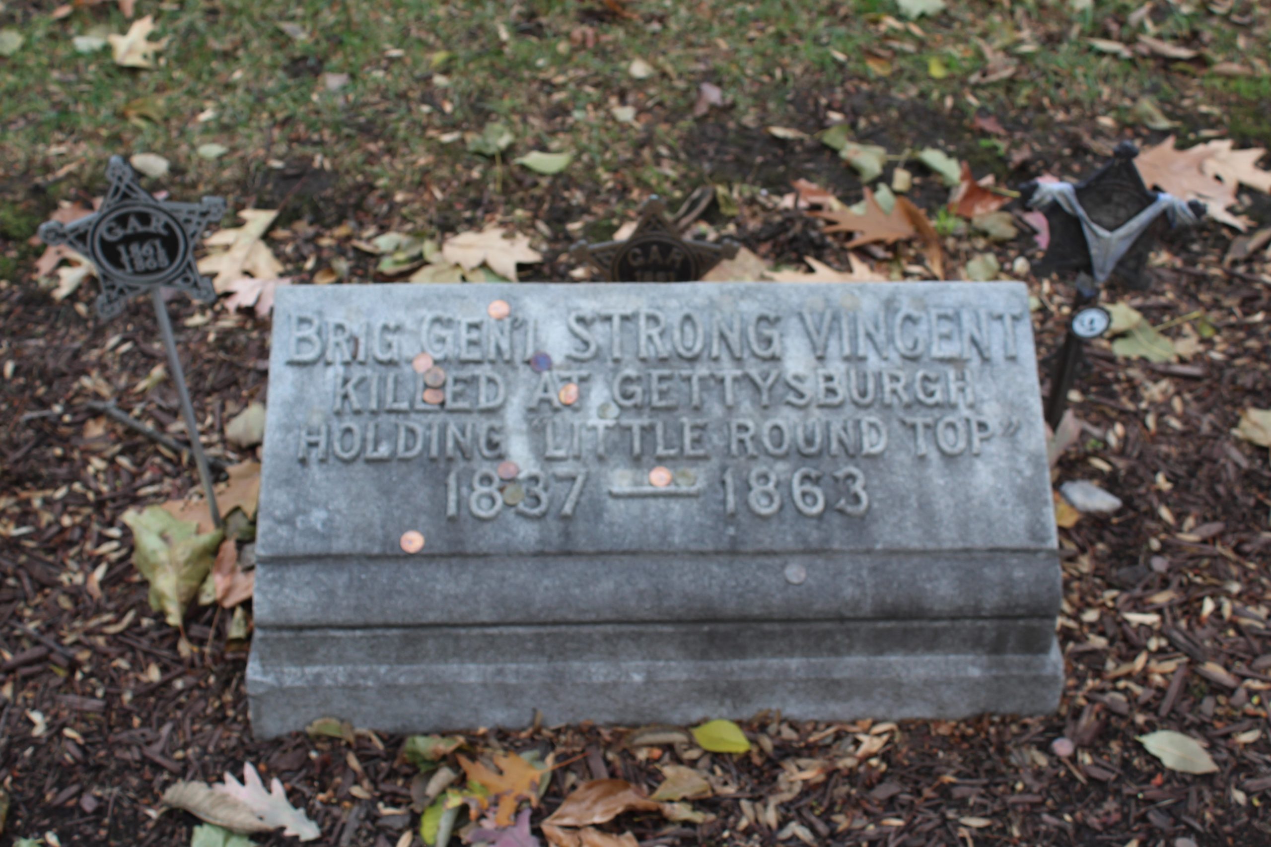 My final stop for the day was the Erie Cemetery where both Strong Vincent, and the first commander of the 83rd Pennsylvania Volunteers, Col. John W. McLane are both buried. McLane is an oft-forgotten figure, even in Erie history, as he was killed in action on June 27, 1862 in the Battle of Gaines’ Mill when he was shot in the chest when Gen. Cadmus Wilcox’s Alabama Brigade attacked. Besides being the first Col. of the 83rd, he was the man who formed the original regiment out of Erie, the 90 day, Erie Regiment in 1861, which never saw battle. The Erie Regiment went on to populate many other Union units during the war. Strong Vincent was a member of the Regiment, as was Hiram Brown, who went on to be the Col. of the 145th, and is also buried in the Erie Cemetery.