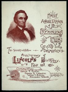 Also, in the wake of the Civil War and during the growth of the Republican Party, it became fashionable to celebrate Lincoln’s birthday as a sort of political rally. Since he had been the first Republican president, it seemed like a great idea to make some speeches and keep the party spirit strong on Lincoln’s special day.
