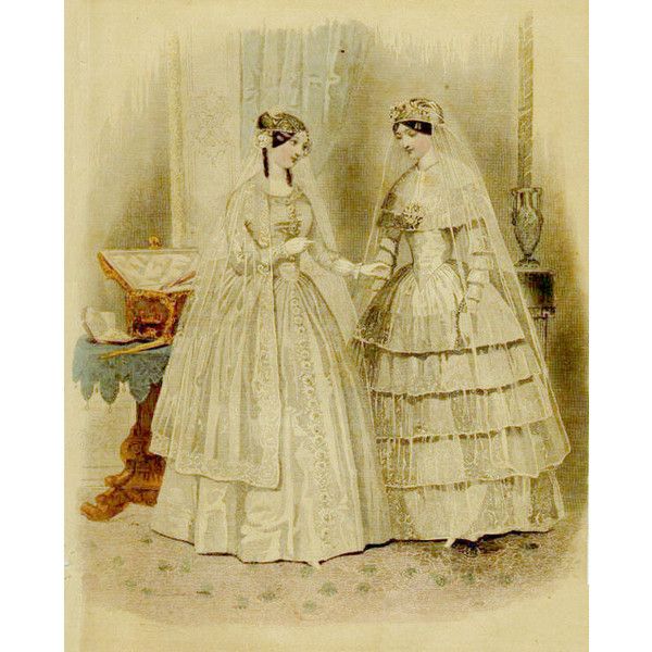 We’re not exactly sure what Mrs. Hancock’s fabled wedding dress looked like, but this fashion plate from March 1850 give hints for fashionable bridal attire at that time.