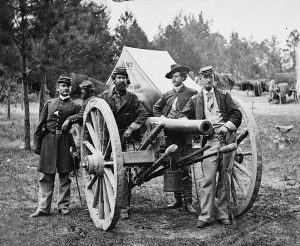In her letter to the editor, Mabel identifies each soldier posed in the most recognizable of Tidball wartime photos, taken at Fair Oaks on June 1, 1862. She even points out the out-of-focus soldier in the back as her father’s orderly, holding Tidball’s horse, which was killed later in the war. But it was one particular line that struck me…