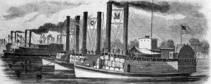An even more unique Union squadron followed close behind the ironclads. The United States Ram Fleet was a wholly civilian, volunteer navy commanded by a family of rivermen operating improvised vessels employing a weapon not seen since Mediterranean rowing galleys disappeared three centuries before. Noted civil engineer and riverman Charles Ellet, Jr. was convinced that—with steam power—ramming was again a viable naval tactic.