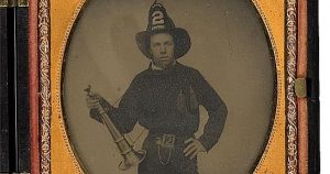 Did a New York firefighter have a backup havelock? Of course. The second-to-last thing that happened to a volunteer fireman as he left to do his duty to “old New York” was that he ducked his head and a loving wife, mother, or sister placed a wet towel on his head, pulling it down in the back for extra protection. Then the helmet was put on over the towel, kisses were exchanged, and off went the b’hoys (more or less…).