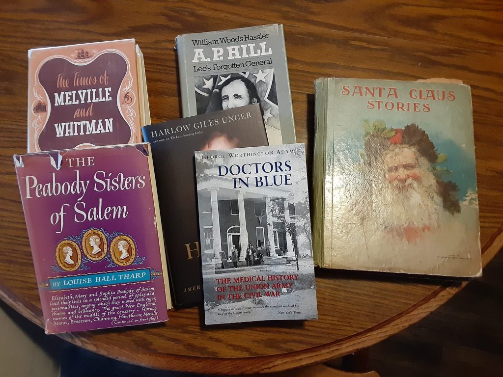 Once I got into the sale this year (I waited about 30 minutes) I quickly filled a bag with choice works. No special treasures this time around (I missed the first weekend when you have the best chance of scoring something great), but solid stuff that was missing from my collection. I was happy to find a copy of Hasslers’ classic bio of Gen. A.P. Hill – A.P. Hill: Lee’s Forgotten General. There was a fine hardcover (probably never read) of Steve Inskeep’s Imperfect Union: How Jessie and John Fremont Mapped the West, Invented Celebrity, and Helped Cause the Civil War. I also scored a newish copy of Henry Clay: America’s Greatest Statesman by Harlow Giles Unger. Maybe my best Civil War find this trip was George Worthington Adams’ Doctors in Blue: The Medical History of the Union Army in the Civil War. Although Doctors in Blue is a bit dated (1952), it is still a great resource and I am happy to add it to my collection.