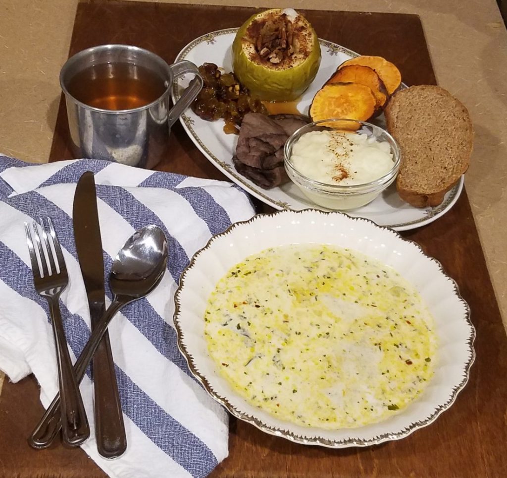 The meal’s flavors varied, but actually blended together nicely with savory and sweet. I loved the oyster soup and will definitely be making that again this winter. The menu is a lot of food, but it’s actually all pretty simple fare with natural, unprocessed flavors that are the classic best of historical cooking.