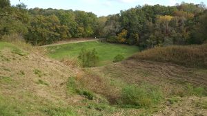 However, due to the unstable terrain that the Vicksburg battlefield is infamous for, North Union Avenue was closed to cars and pedestrians. Thayer’ Approach landed smack-dab in the middle of North Union Avenue, so we settled for getting a view from the Confederate side. Several blue signs dotted the slope leading down to North Union Avenue and Tour Stop #6, but I could read none of them from the safety of the parking area. I hoped that perhaps one of these signs would be a marker for the 9th Iowa Infantry and I could stand where Ackerman might have been. I carefully trekked my way to each sign, finding no trace of the 9th Iowa. I did, however, reach the high watermark of the Union’s advance to the Confederate line.