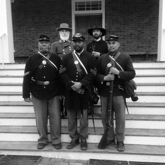 A second, and heart-warming, memory I have of that day is of a gentleman stopping me in the yard of the McLean house after the surrender event. He apologized for ‘bothering me,’ but asked if I would take a photo with his father? He had brought him to the event, and Dad wanted a “picture with General Grant, if he didn’t mind.” I said that I would be pleased to do so and saw that his father was an elderly gentleman and sitting in a walker. His son then casually told me that his father had brought him as a child to the 100th celebration of the surrender there in 1965, and now he was bringing his father to the 150th.  At that time, I was so moved that I told him, “Just a moment!” and called to a nearby orderly. I asked him to go to the Federal camp next to the house and tell all officers present in the yard that General Grant wanted as many of them as could come immediately at the gate of the McLean House.  Quite a few, all present in the area, came running, asking what I wanted/needed. I explained to them the situation and told them that not only was Dad going to get his photo with General Grant but with most of the Federal command staff! They were all as touched as I was over the story. We all lined up on the front fence with Dad and son with the McLean House in the background for what I feel was probably the best photograph taken at the sesquicentennial of the surrender of Lee to Grant at Appomattox. It was one of the most poignant examples of the good a Living Historian or Re-enactor can do in the portrayal of a person in history and, by doing so, bring history into the minds and hearts of the public in the most positive way imaginable. I still think that Grant would be pleased about that.